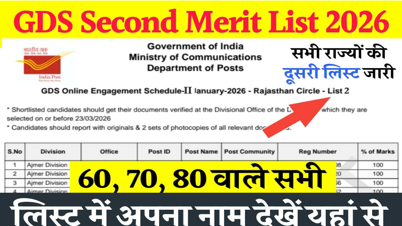 GDS Merit List 2026 कैसे चेक करें? जानें लेटेस्ट अपडेट और पूरा प्रोसेस March 8, 2026March 7, 2026 by Himanshu Chaliya