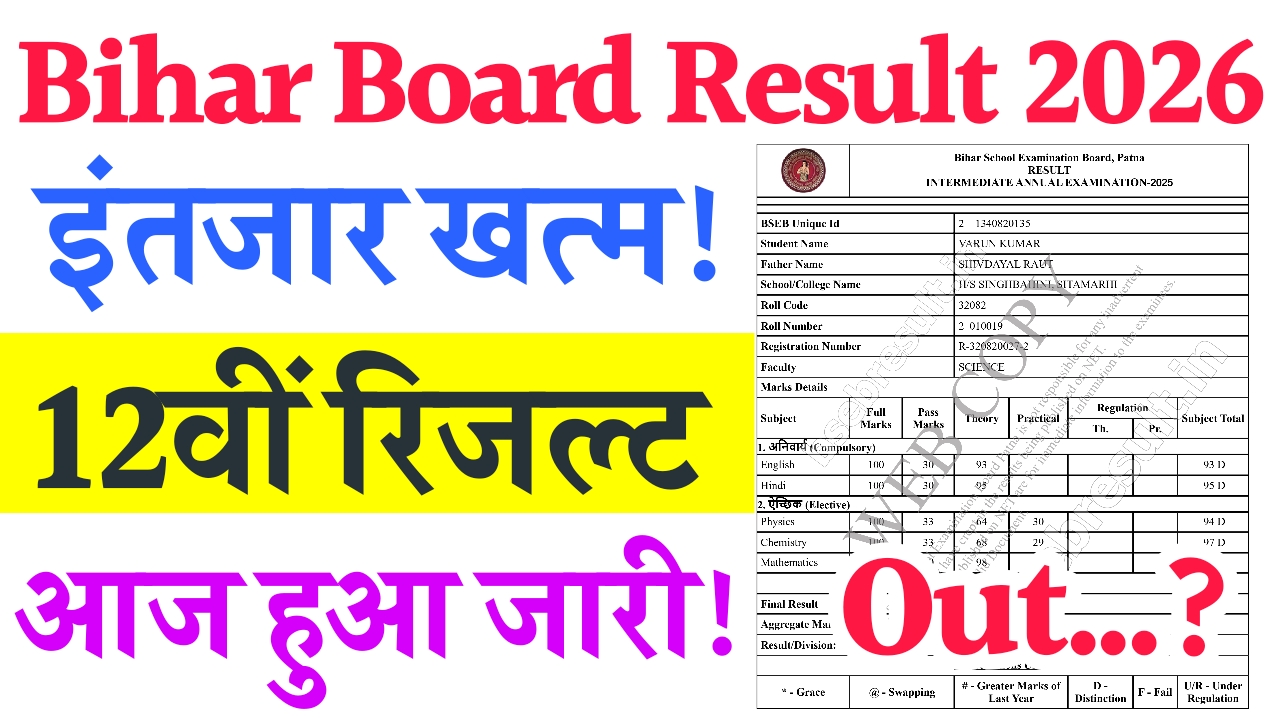 Bihar Board 12th Result 2026: इंटरमीडिएट रिजल्ट जल्द जारी, ऐसे चेक करें अपना स्कोर March 16, 2026 by Himanshu Chaliya